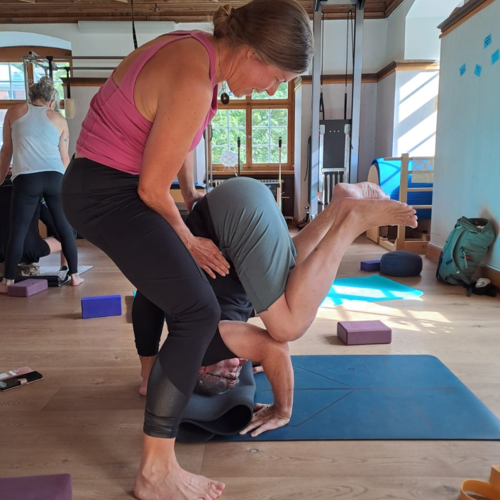 Mein Yogastil ist geprägt von meiner Ausbildung in Indien im Transformational Yoga bei Swami Vidyanand und weitaus mehr durch meine jahrelangen Yogakurse in Hatha-Yoga und Vinyasa Flow Yoga. Meine Kurse beginnen meistens mit einer Übung für die Atmung und einer aus der Kinesiologie zum energetischen Ausgleich.